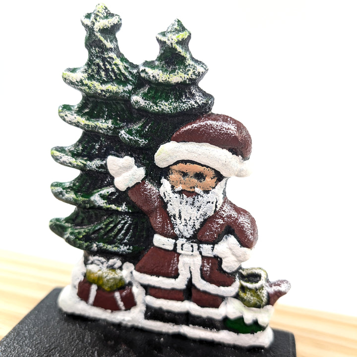 This cast iron Father Christmas stocking holder adds a traditional and heartwarming touch to your holiday decorations. With its vibrant colours and sturdy build, it’s both a delightful display piece and a practical way to hang stockings for the big day.