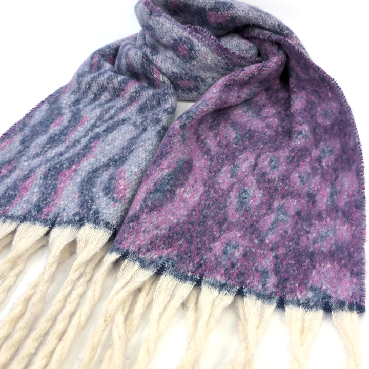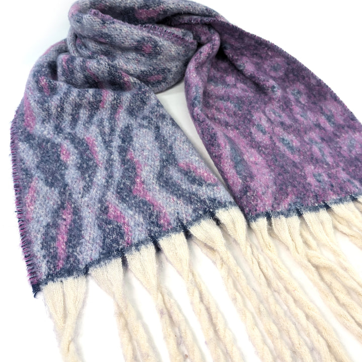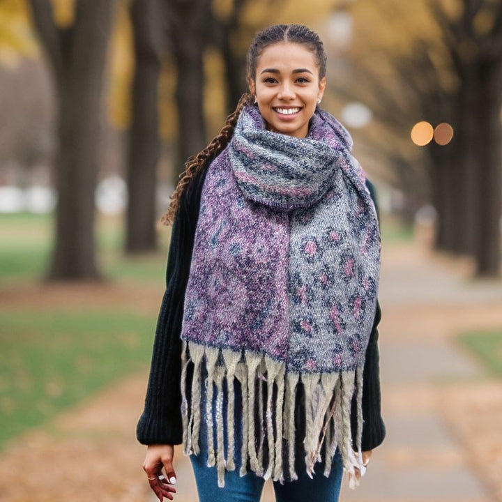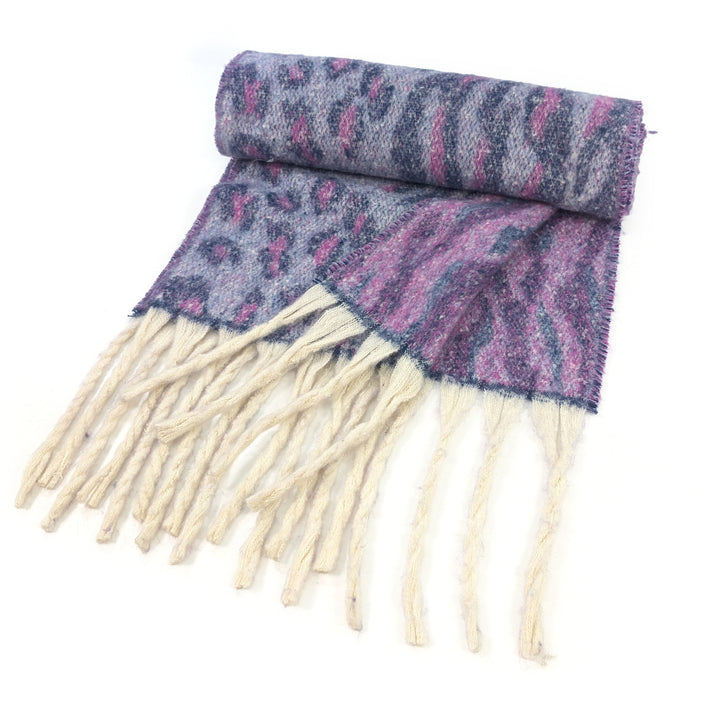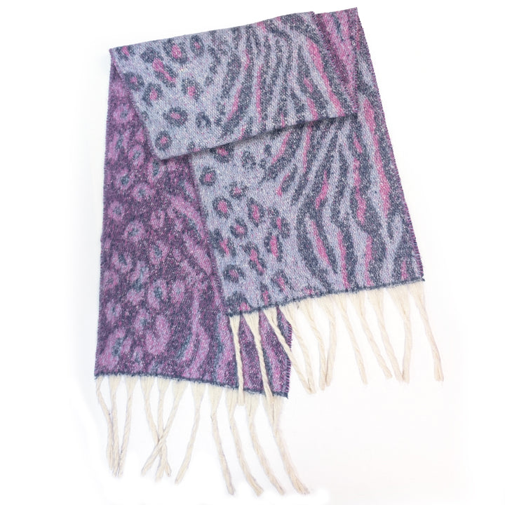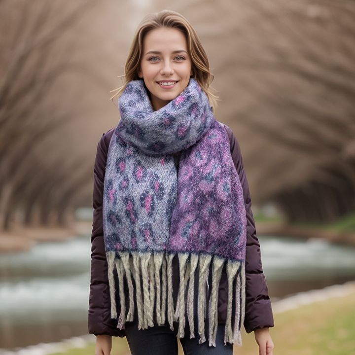 Embrace bold style this winter with a thick purple animal print scarf thats as cosy as it is colourful. A striking and practical layer for chilly days.