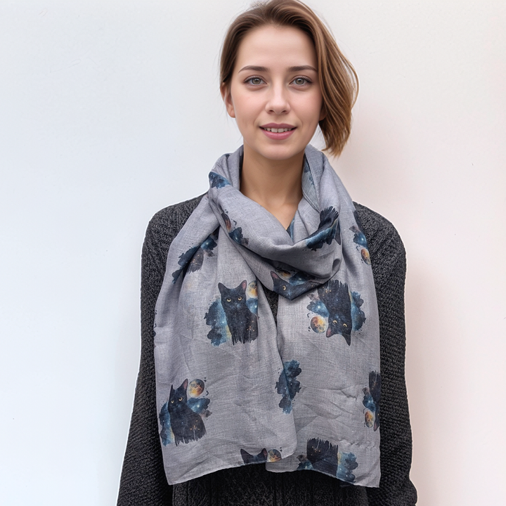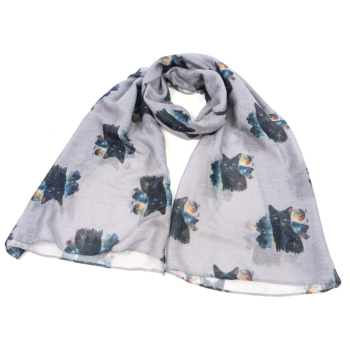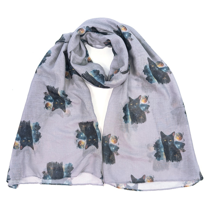 Black Cat & Moon Scarf – Grey | Exclusive Design