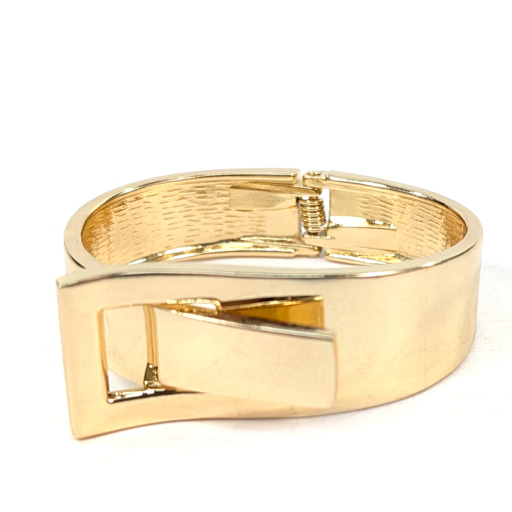 This gold Buckle Bangle is designed with a clever buckle-inspired style that adds sophistication and modern charm. Ideal for elevating casual and formal looks alike.