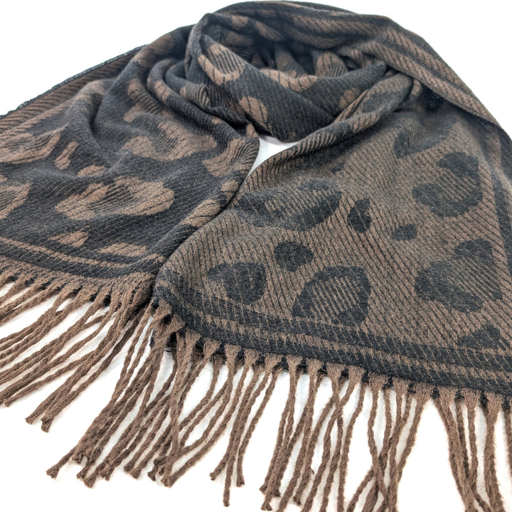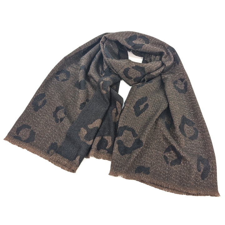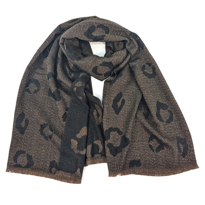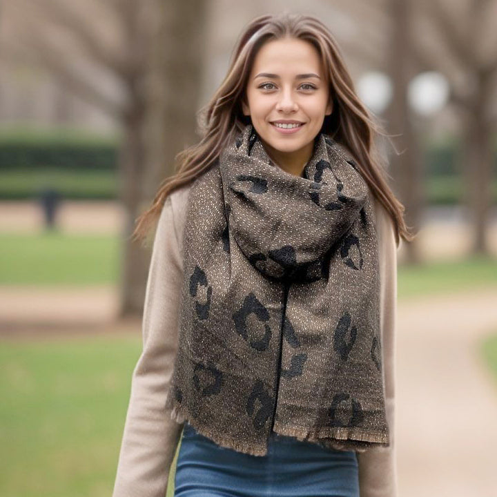 Bukit - Sparkling Animal Print Pashmina Scarf (60x180cm) - Black