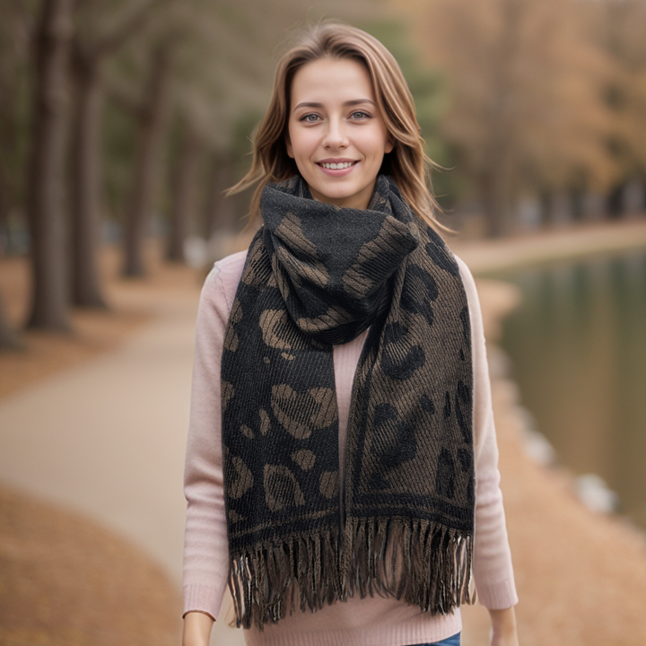This chic black and gold scarf is your go-to accessory when you want something timeless with a twist. Soft, glamorous, and easy to wearperfect for both casual and dressy looks.