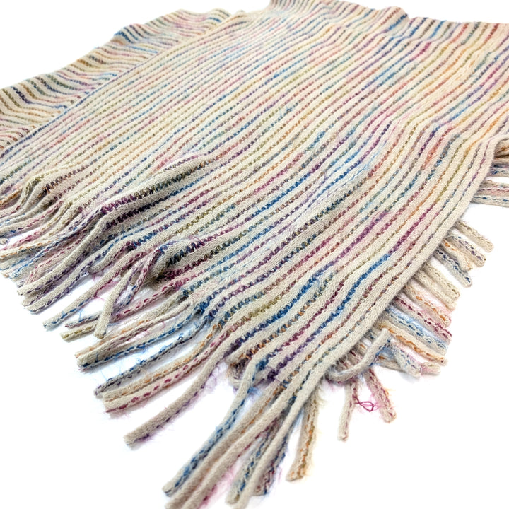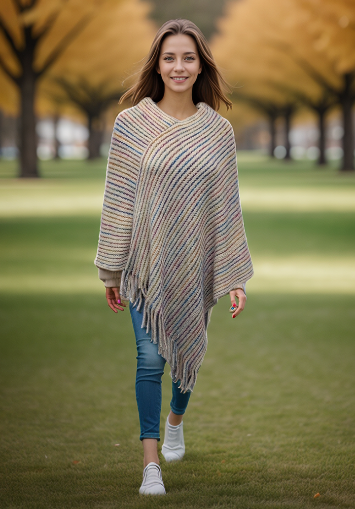 This soft cream poncho is woven with playful rainbow-like stripes that bring colour to grey days. Lightweight, fuss-free, and oh-so-easy to wear, its the go-to for adding joy to everyday layering.