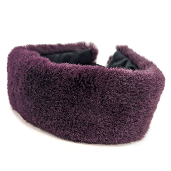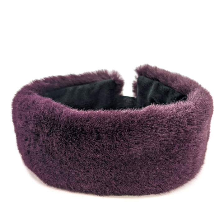 This mulberry faux fur piece is both a headband and a snood, offering cosy flexibility and glamorous warmth all season long. Whether wrapped around your neck or styled on your head, its a standout cold-weather accessory youll reach for again and again.