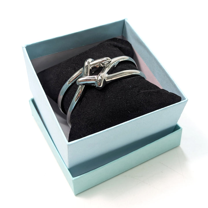 Make your style stand out with this silver hashtag bangle. Its unique overlapping crossover design offers a trendy yet elegant finish, perfect for fashion-forward accessorising.