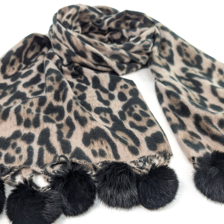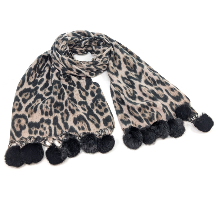 Kaja - Fluffly Animal Print Scarf (70x180cm) - Grey