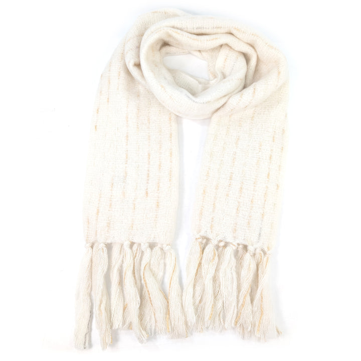 This cream Lipah scarf is the definition of understated charm. The woven ribbon adds a delicate shimmer that catches the light, while the tonal tassels finish it off with flair. Effortlessly versatile and endlessly elegant.
