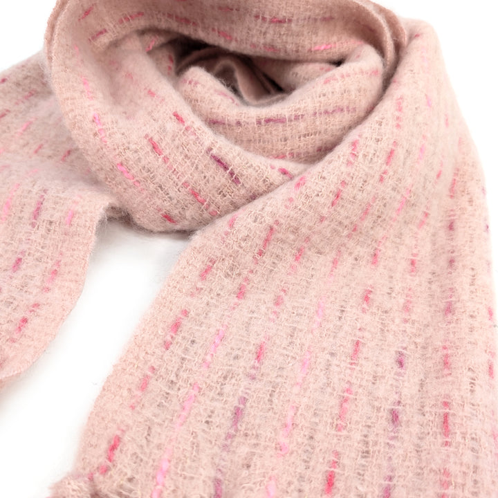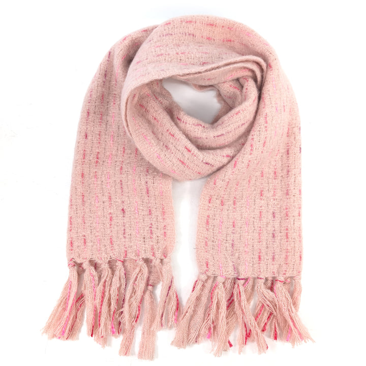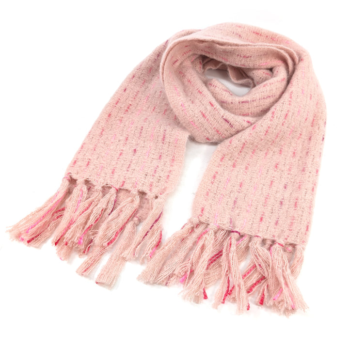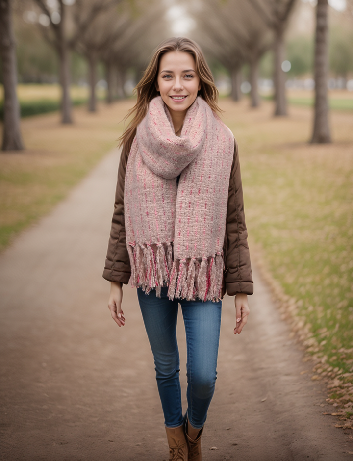 ✨ Woven Ribbon Sparkle: Eye-catching pink threads are subtly laced through the scarf and tassels for extra texture.