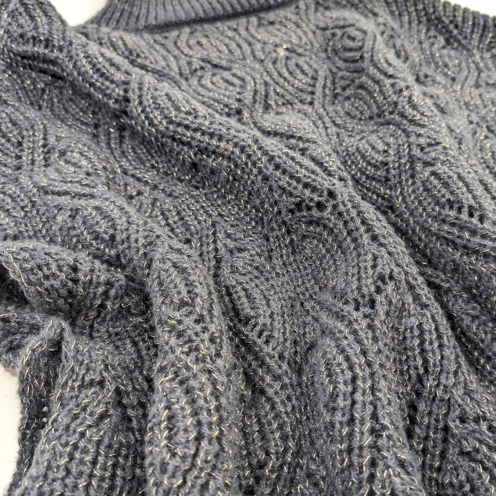 - ✨ Chic Texture: Cable knit design with soft sparkle throughout in a cool grey tone.