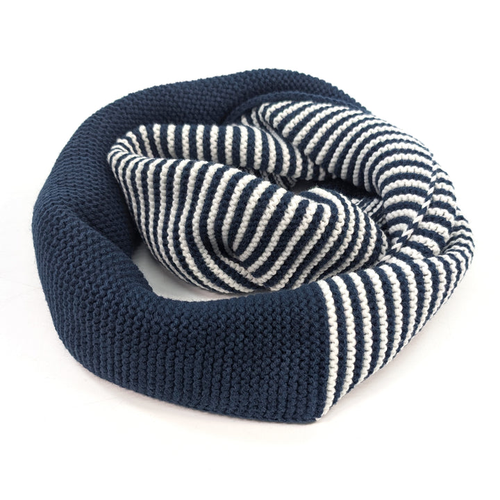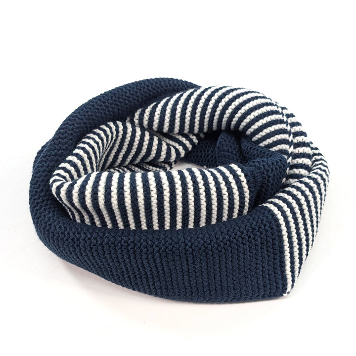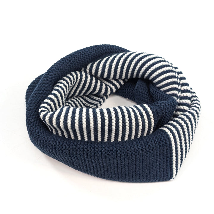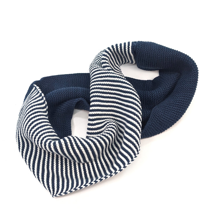 The Pandji Snood – Navy Blue offers understated style with a twist. Flip from stripes to bold navy with a quick wrap or turn.
