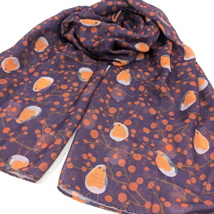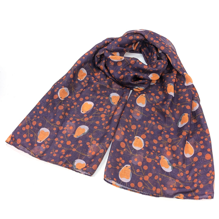 Red Berry Robin Scarf Purple | Lightweight Scarf