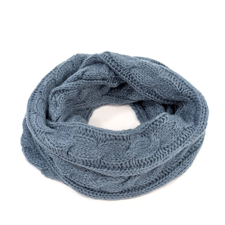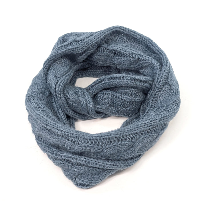 The Selat Snood Denim Blue brings together cosy cable knit texture and an ultra-wearable blue tone. Easy to throw on and style your way, its a must-have for effortless winter layering.