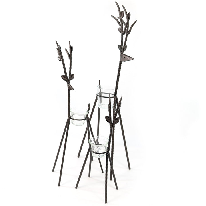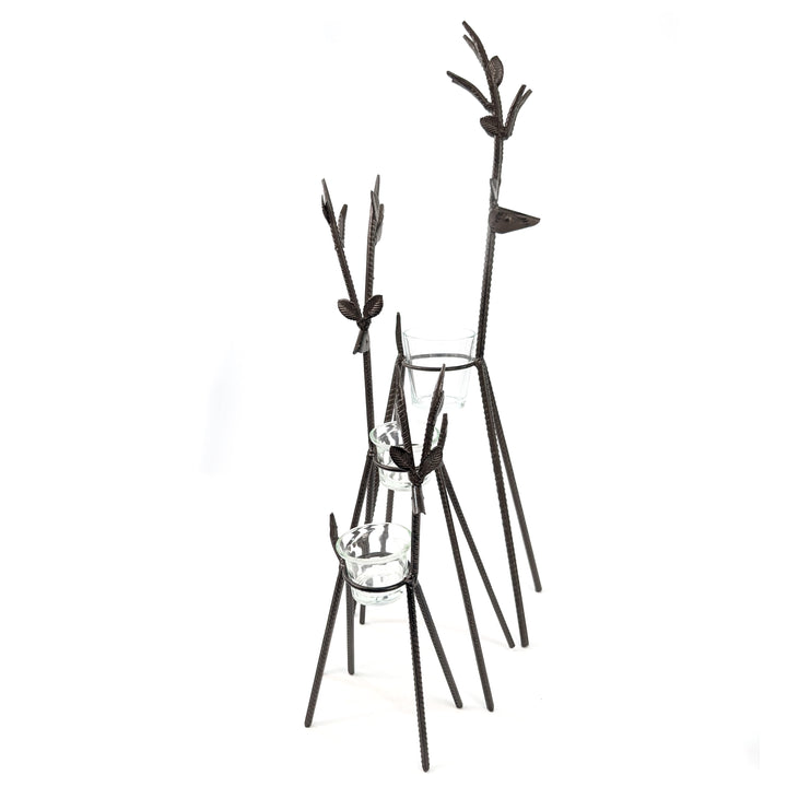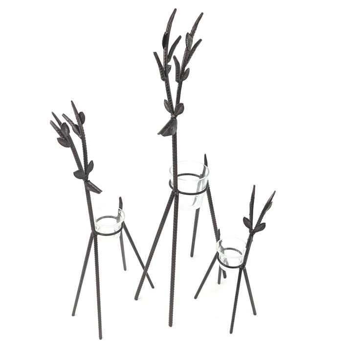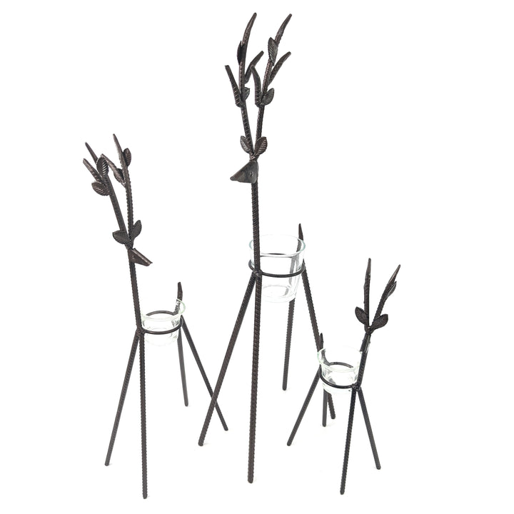 Set of 3 Cast Iron Stag Candle Holders | Rustic Home Decor