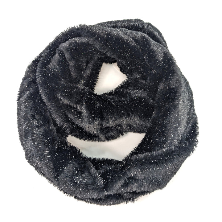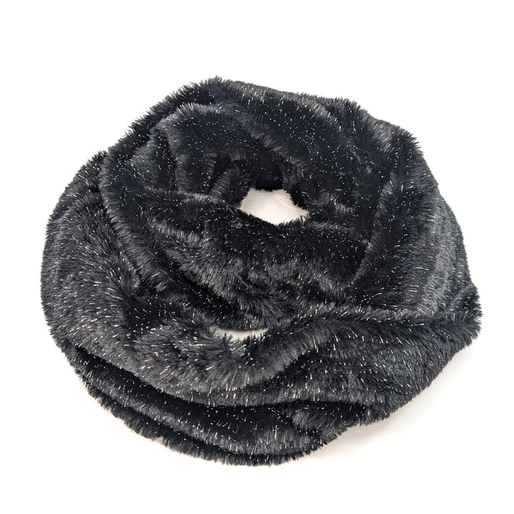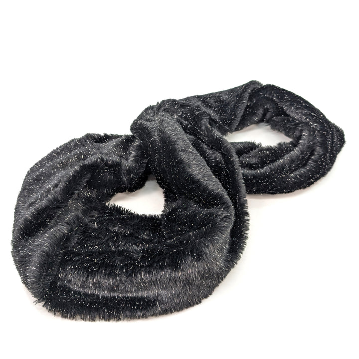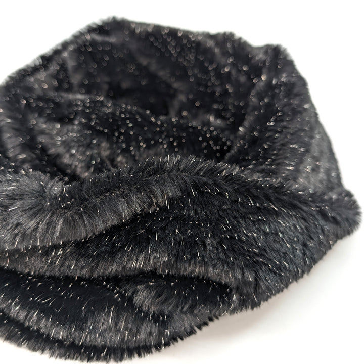 Our Sparkly Black Faux Fur Snood combines elegance with warmth in a statement winter accessory. Super thick, silky soft, and effortlessly stylish it's perfect for elevating coats and jumpers alike. Whether you're heading to the shops or on a winter walk, this snood delivers instant snug sophistication.
