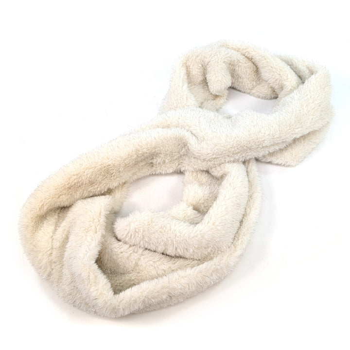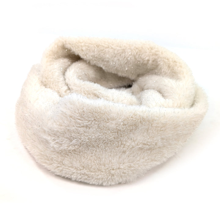This soft white snood brings cosy glamour to chilly days with a hint of sparkle that catches the light. Its double-loop design keeps you warm while offering effortless style. A must-have for crisp mornings, festive strolls, and seasonal gifting.