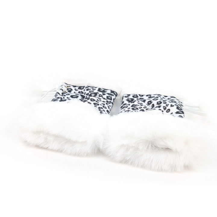 Suede Effect Fingerless Gloves - White Animal Print | Fingerless Gloves